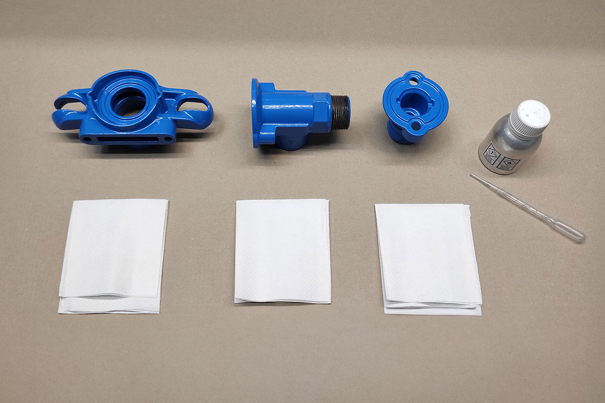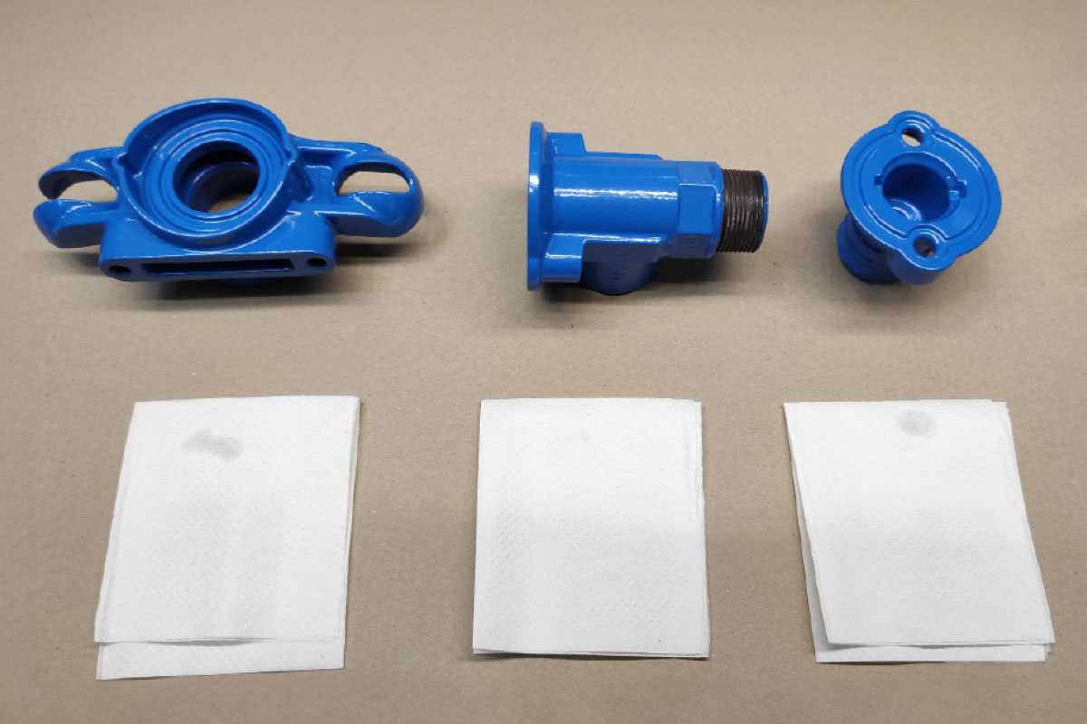Zero calibration is carried out on a steel sample supplied by the producer of the coating thickness tester and not on the blasted surface of the casting.