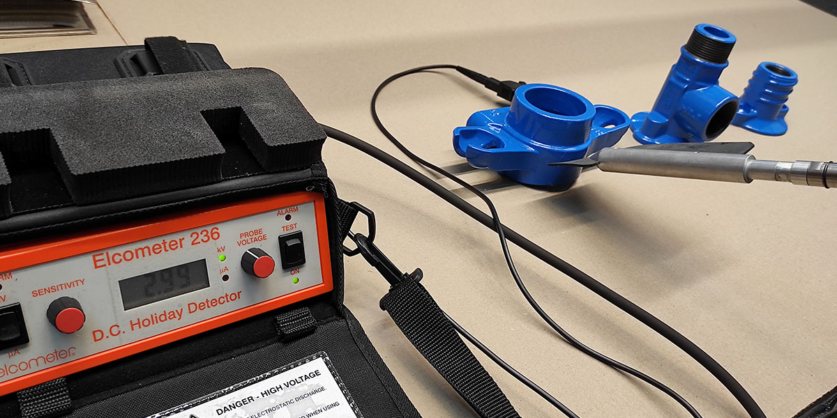 – Subsequently the pore-free test is carried out on the sampled areas. No discharge is allowed at 3 kV.